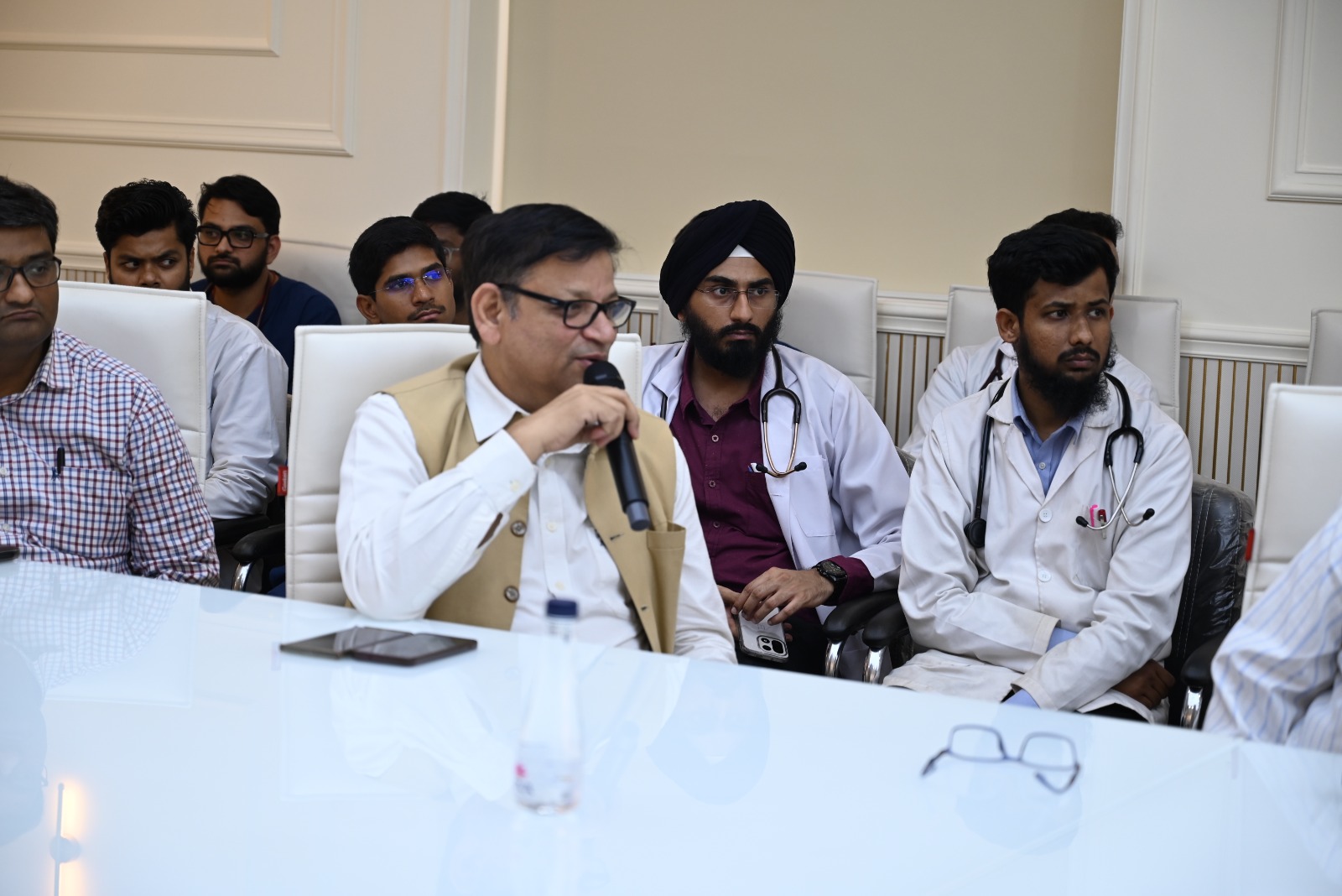 Elaborate discussion headed by Principal and Medical Superintendent on medical issues and skill upliftment during treatment of the patient, keeping consumer in mind and its related legal issues. All the department heads, unit chief, and all medical faculty participated in the clinical discussion. The discussion was very fruitful and informative.